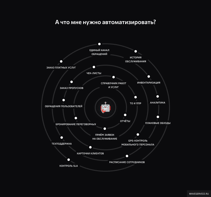 Мы — IT-компания с десятилетним опытом в автоматизации бизнес-процессов. Уже больше трёх лет занимаемся разработкой Wave Service — это Service desk, созданный с учётом особенностей управления коммерческой недвижимостью. В этой статье разберём то, с чем чаще всего сталкиваются управляющие компании при выборе систем автоматизации сервисных заявок.