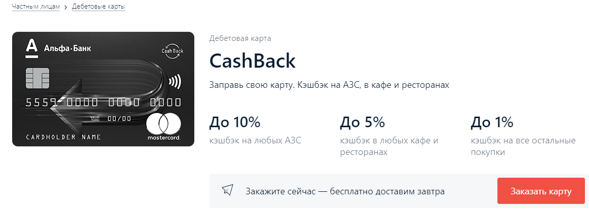 До 10% в категории АЗС, до 5% – рестораны и кафе, 1% – прочие категории |
