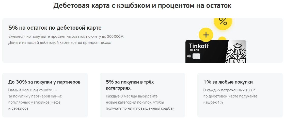 - Начисление 5% на остаток до 300000 руб., при условии расходов по карте в 3000 руб. за отчетный период;