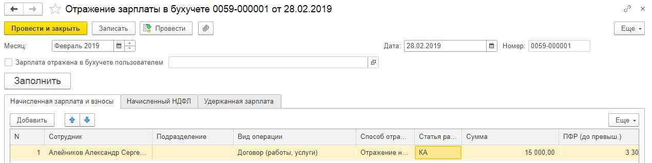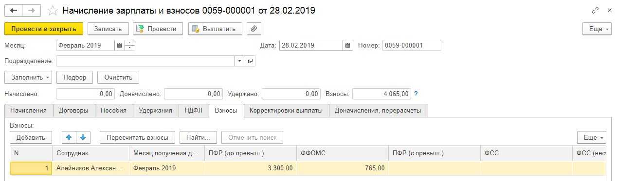Но обратите внимание, что страховые взносы будут рассчитаны все равно в документе «Начисление зарплаты и взносов»
