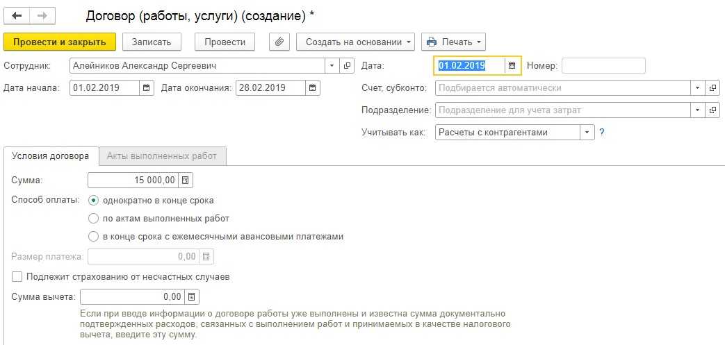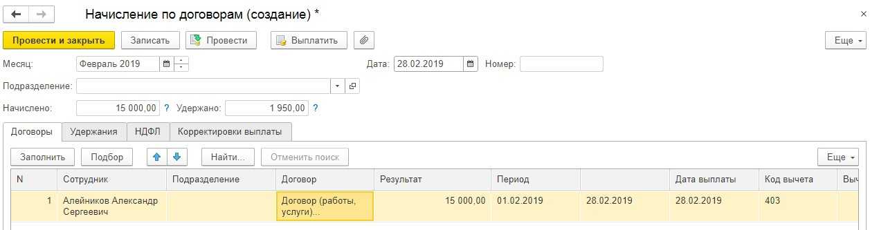 Начисление вознаграждений по договорам ГПХ в системе программы 1С: Зарплата и управление персоналом, редакция 3.1