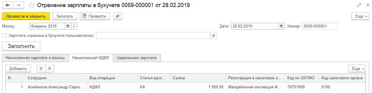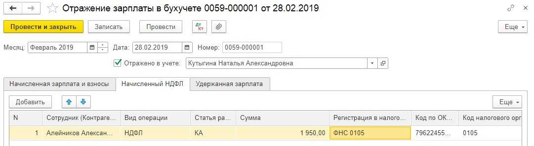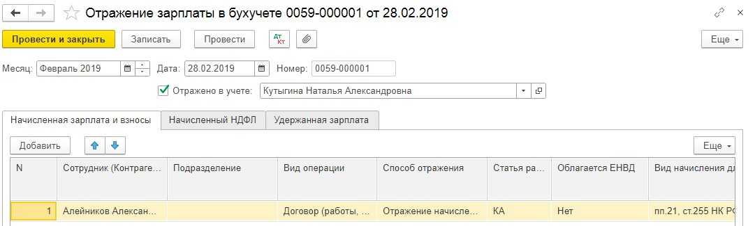 Как только вы проверите правильно ли проставлены все суммы и проставите галочку, “Отражено в учете”, проведете документ, он отразится в бухучете и будут сформированы проводки.