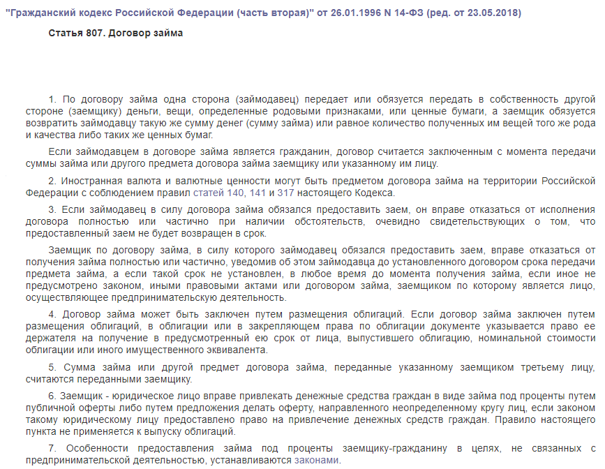 По сути, это тот же кредитный договор, только вместо банка – ИП, ООО, самозанятый. Тот, кто дает деньги, называется заимодавцем, а тот, кто получает – заемщиком. Сам порядок предоставления займа регулируется статьями 807– ГК РФ.