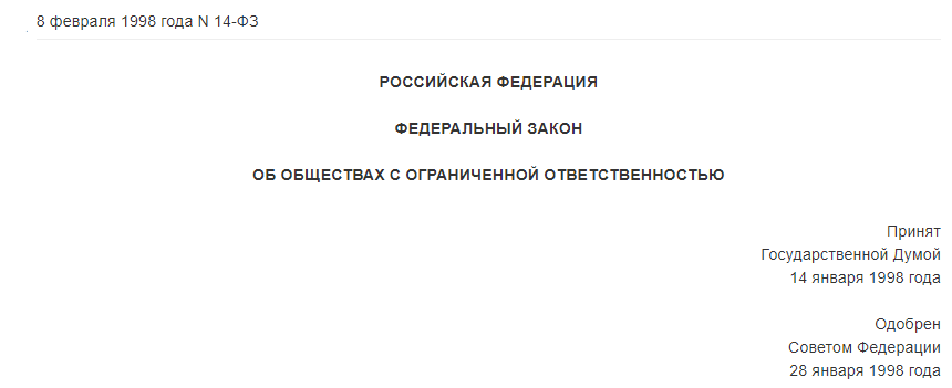 Также следует обратиться к федеральному закону, который регламентирует деятельность ООО.