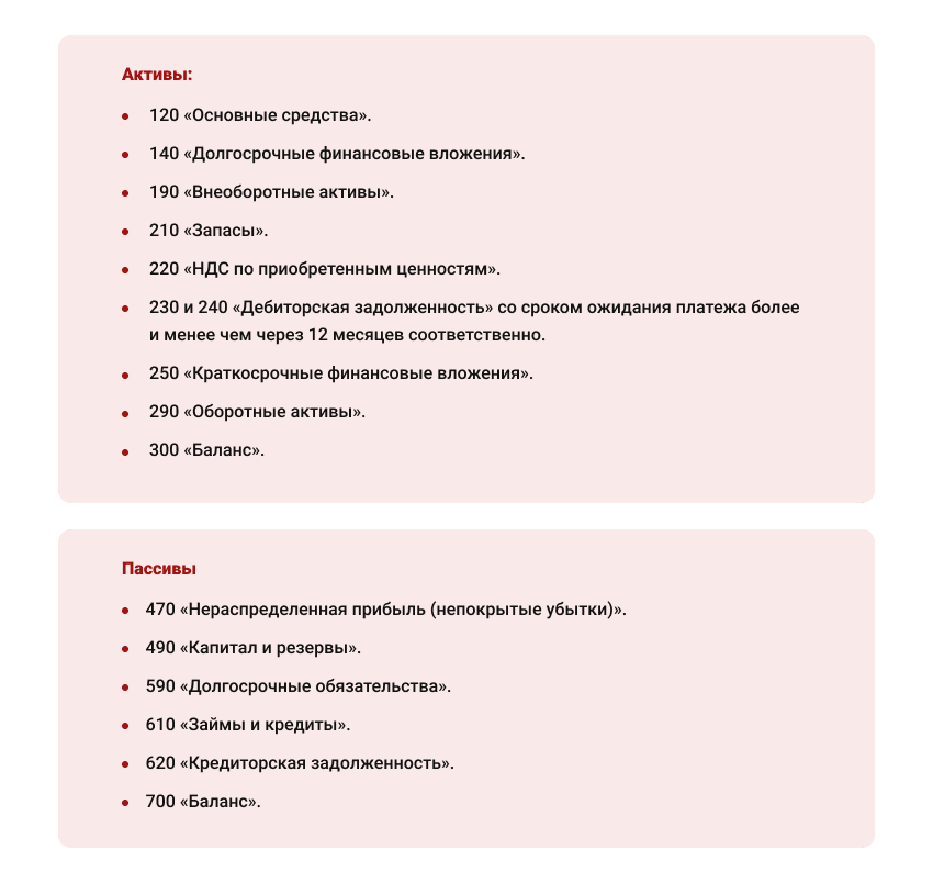 Перечислим коды строк, которые относятся к активам и пассивам нового и прежнего бухгалтерского баланса с их расшифровкой.