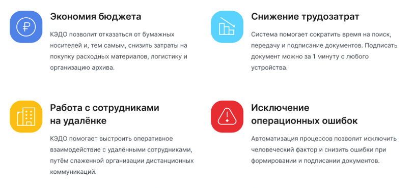 - Экономия финансовых средств. КЭДО позволяет исключить затраты на бумагу, логистику, расходные материалы и т.д.