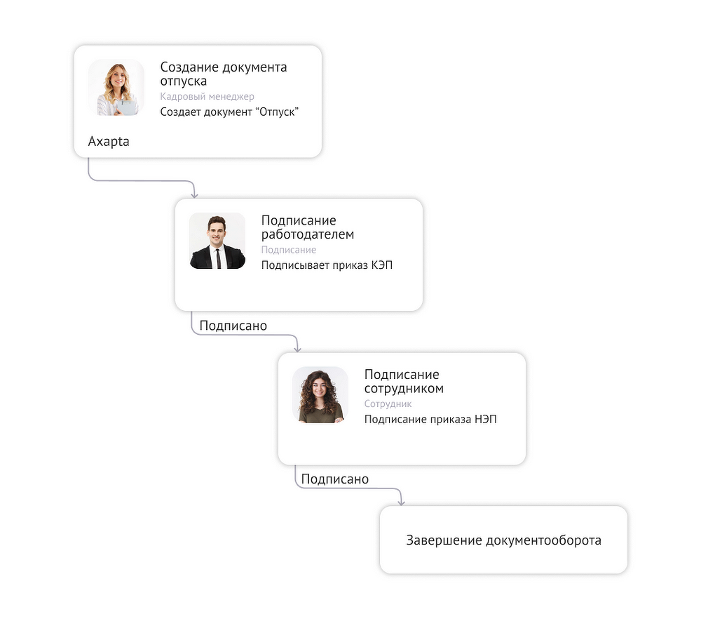 Например, бизнес-процесс по формированию отпуска выглядит так:
