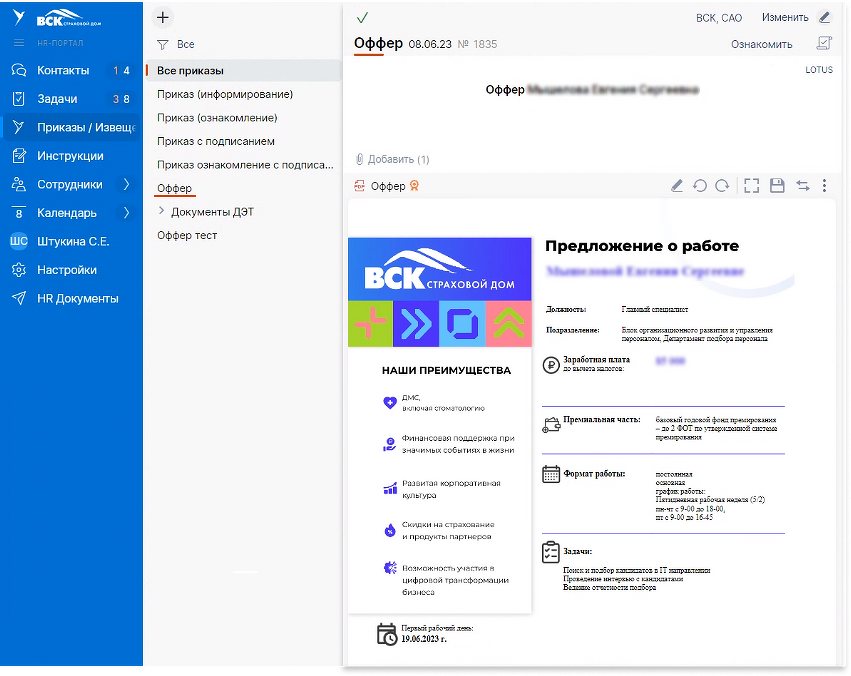К концу 2022 года HR-специалисты смогли уже отправлять офферы новым сотрудникам из СБИС.
