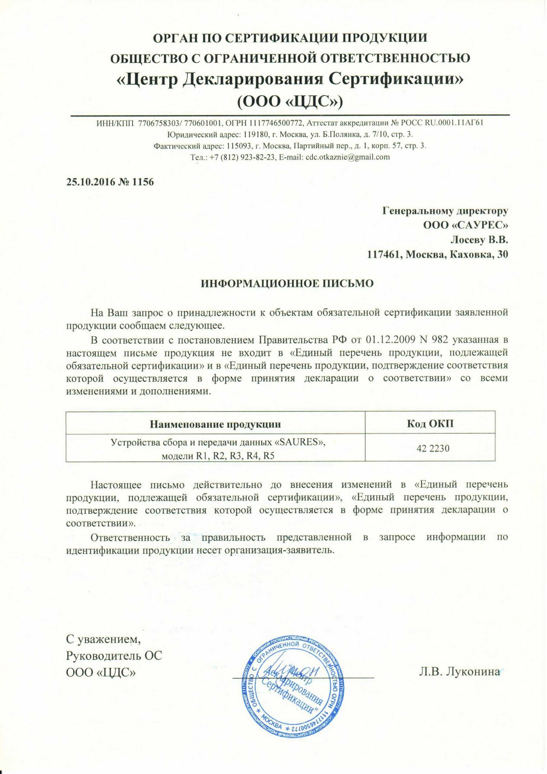 Отказное (разъяснительное) письмо получают от органа по сертификации, в области аккредитации которого есть заявленная продукция, на бланке установленной формы, заверенного подписью уполномоченного лица и печатью органа по сертификации. На нем обязательно должны быть следующие сведения: