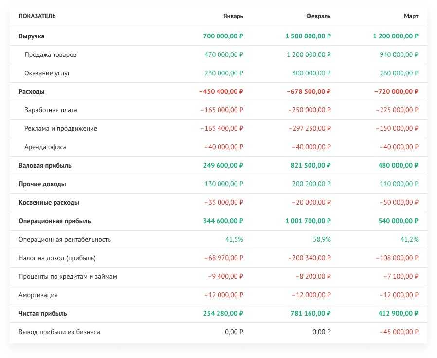 Отчет P&L отражает все этапы формирования чистой прибыли, учитывает налоги, амортизацию, проценты по кредитам и займам