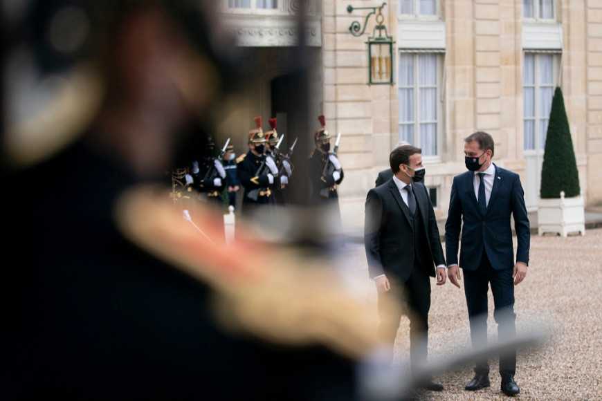 Эмманюэль Макрон на обеде с Игорем Матовичом, вице-премьером и министром финансов Словакии, 2021. flickr.com