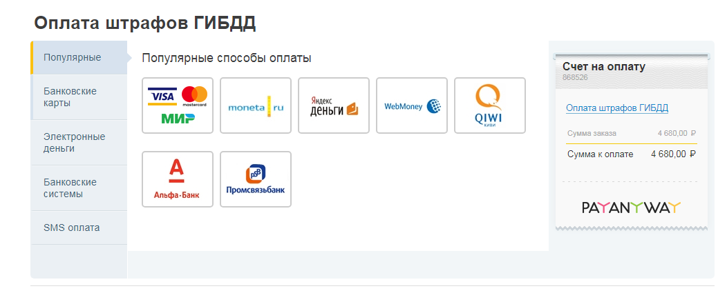 • оплатить штраф и налоги любой банковской картой, и данные сразу попадают в GMP GIS (услуги денежных переводов предоставляет ПАО «Промсвязьбанк», лицензия ЦБ РФ № 3251);