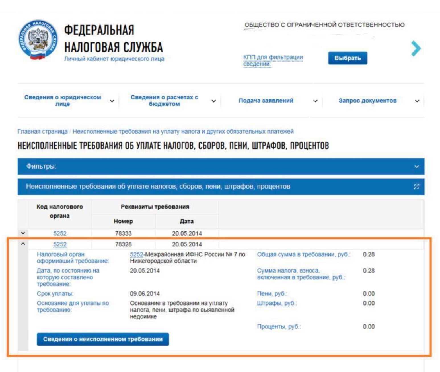 Чтобы увидеть штрафы, нужно на сайте налоговой перейти в раздел «Юридические лица», затем — в личный кабинет компании. Там и будет список всех штрафов.