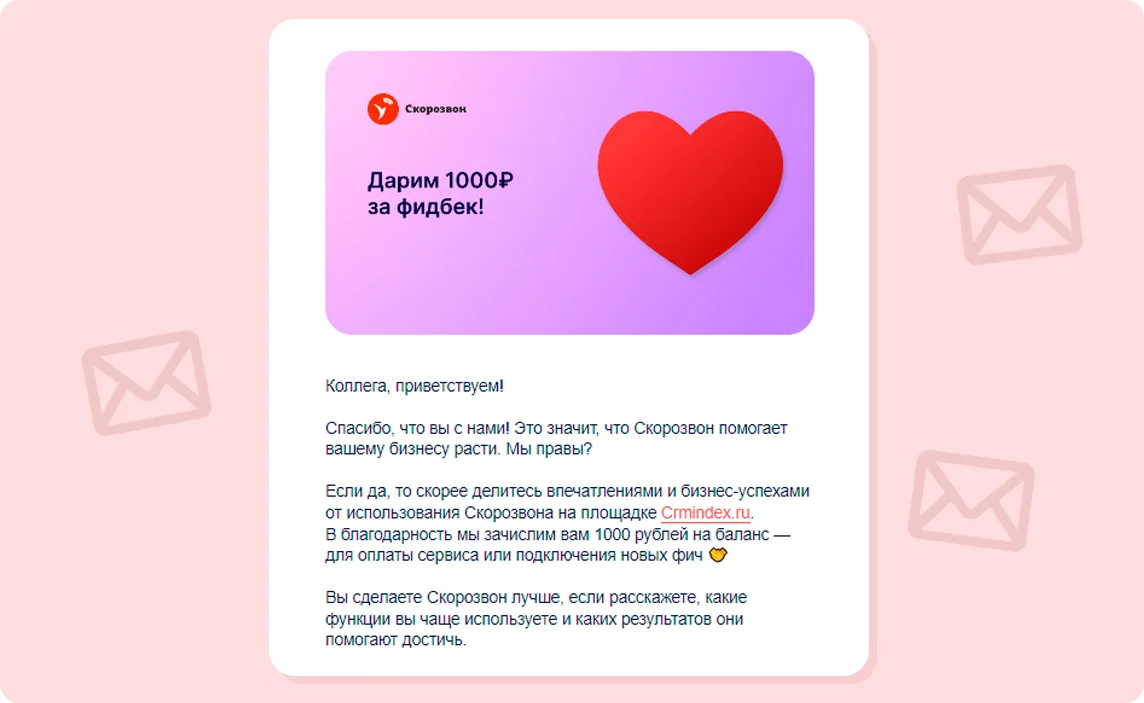 Пример письма, которое побуждает клиента поделиться своими впечатлениями: