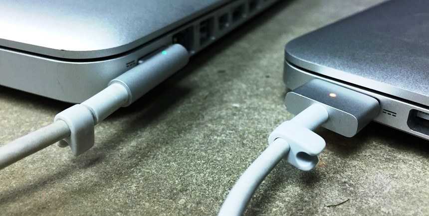 В MacBook Air встроен адаптер питания MagSafe на 45 Вт. С 2012 года он использовал адаптер стиля MagSafe 2. До этого — разъем стиля «L». Каждый MacBook Pro на 13 дюймов и 2,53 ГГц 15 дюймов выпуска 2009 года использует адаптер питания MagSafe 60 Вт.