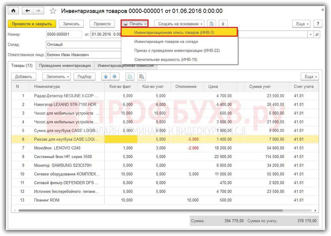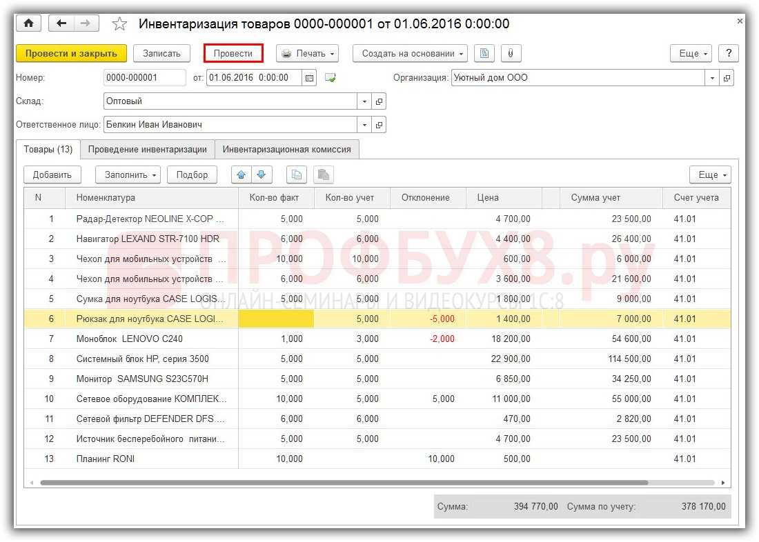 Учимся проводить инвентаризацию ТМЦ (1С:Бухгалтерия 8.3, редакция 3.0)