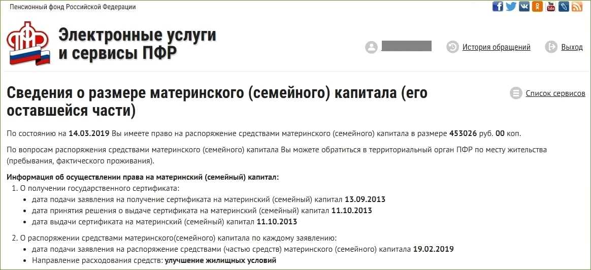 Чтобы отслеживать движение средств и проверять остаток капитала, можно зайти на сайт ПФР.