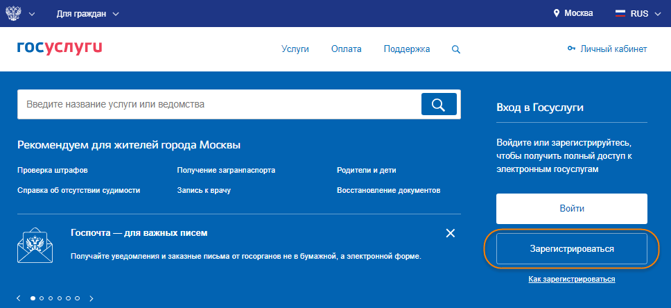 - получить заказным письмом код подтверждения — как только письмо будет доставлено в почтовое отделение, адресат получит уведомление (забрать письмо можно лично, предъявив паспорт и извещение);