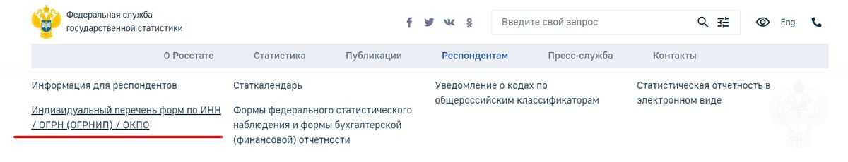Шаг 2. Находим специальный сервис ФСГС — отчетность организаций в Росстат по ИНН, ОГРН (ОГРНИП), ОКПО.