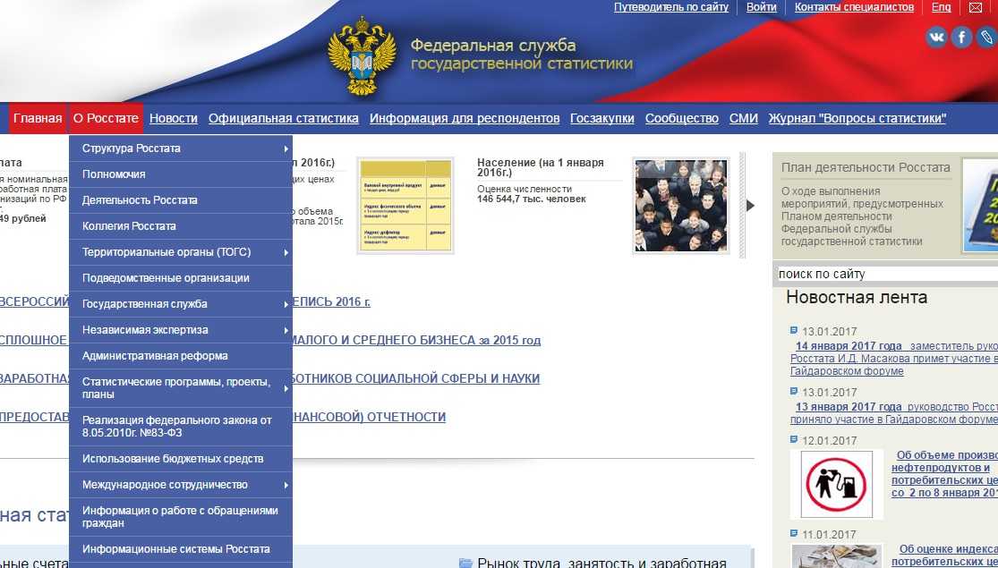 Шаг 1. Переходим на официальный электронный сайт Росстата.