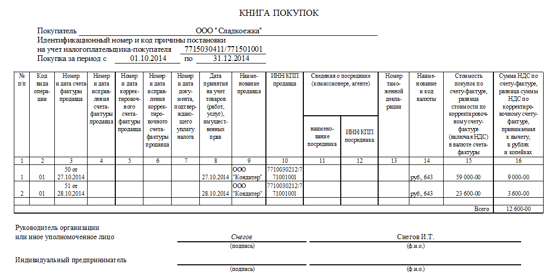 Во втором случае приобретается ПО, значительно упрощающее процесс фиксации операций. В текст книги продаж и покупок обязательно включаются сведения: