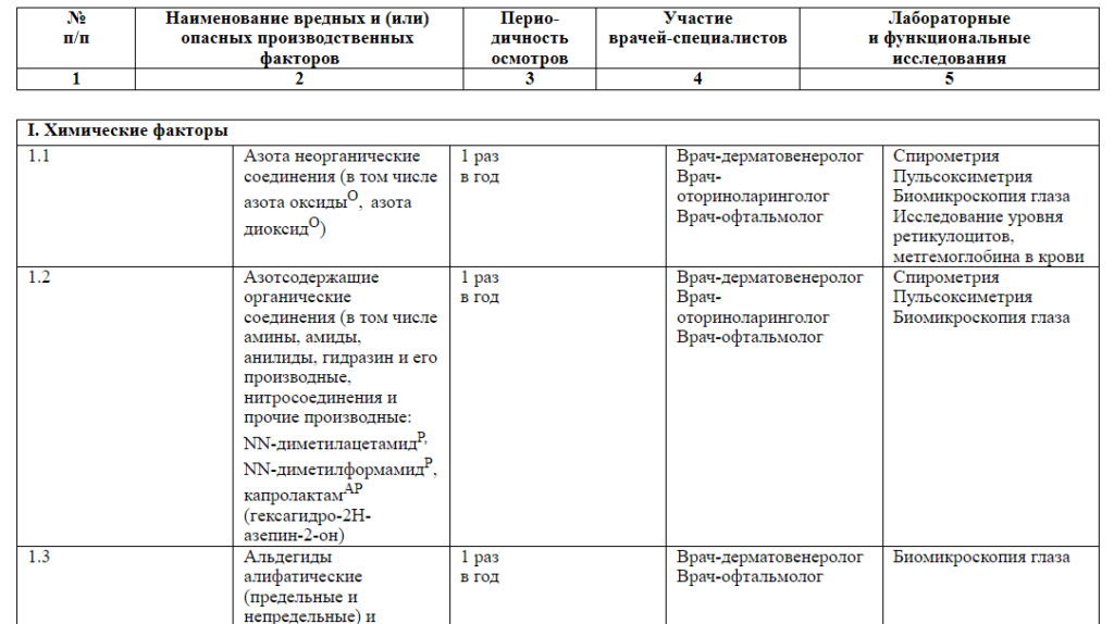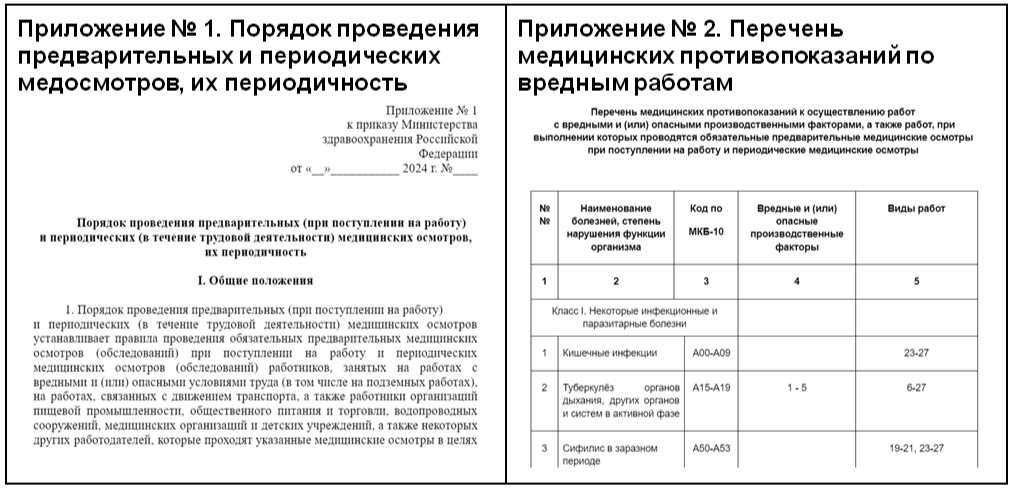 В проекте есть еще одно важное приложение, в котором указаны периодичность проведения предварительных медосмотров при поступлении на работу, а также периодических медицинских осмотров