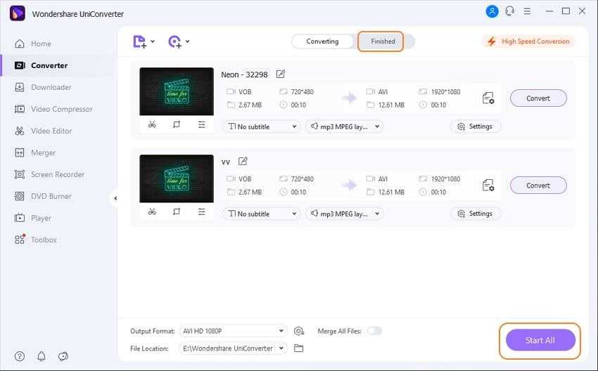 After all, changes have been completed, you can do the final step. Click the Start All button on the left-bottom and your videos will be converted within a few minutes.