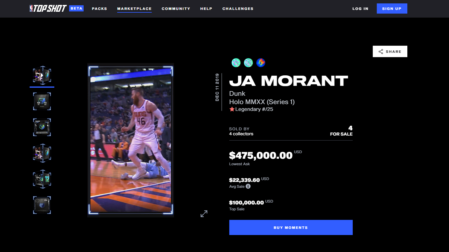 Как пример NFT Ja Morant в созданный в двух экземплярах, цена в январе 2021 года $240 000, цена в сентябре 2021 года $475 000.