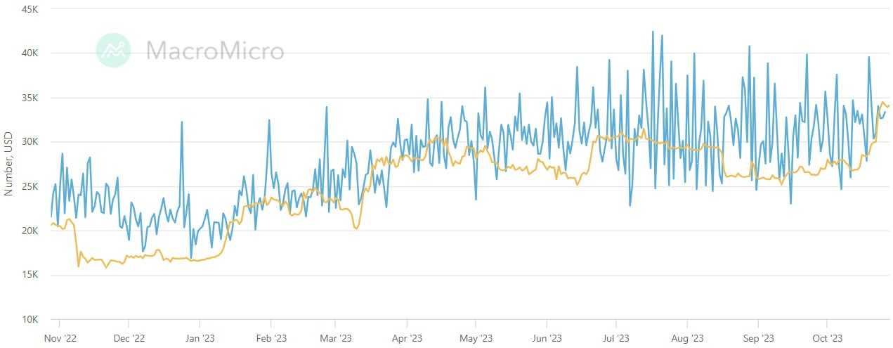С точки зрения факторов спроса ситуация выглядит даже более обнадеживающей. В частности, общий консенсус трейдеров и инвесторов состоит в том, что ФРС неизбежно перейдет к снижению процентных ставок в следующем году. К концу 2024 года они должны составить уже около 4,5-4,75%, что создаст достаточно большие объемы недорогих кредитных средств для инвестирования, в том числе и в биткоин. Если в 2024 году в глобальной экономике наступит рецессия, то снижение ставок будет происходить еще быстрее.
