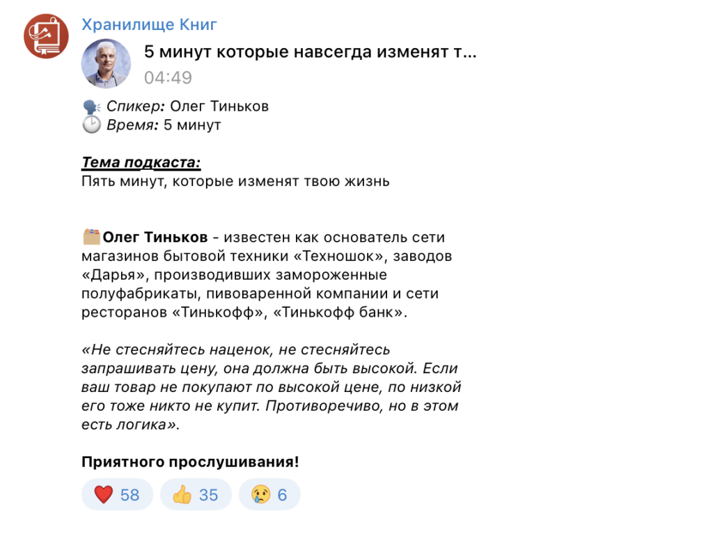 Подкаст Олега Тинькова на канале «Хранилище книг»