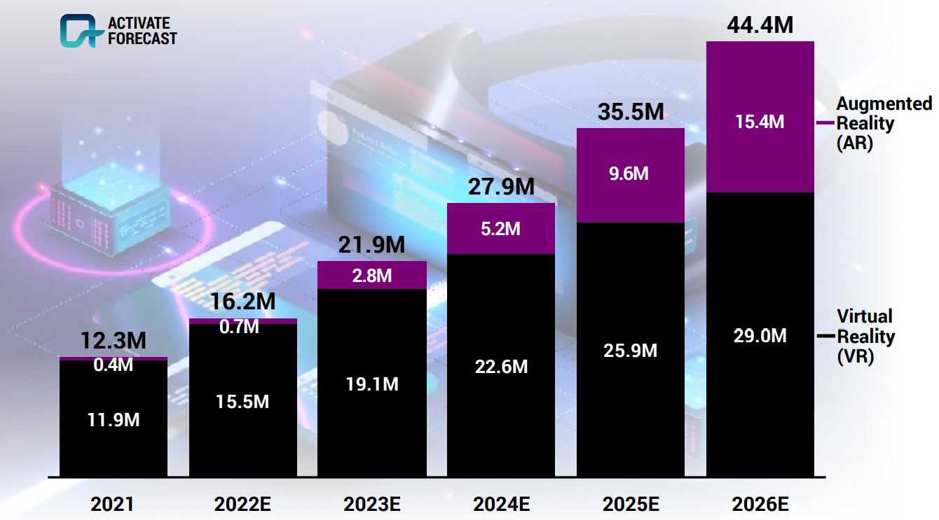 Прогноз продаж AR- и VR-гарнитур до 2026 года