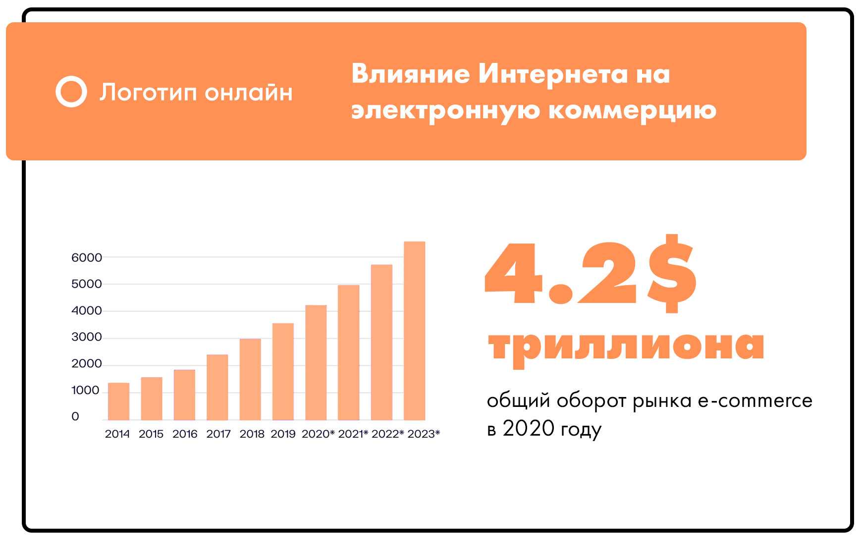 По прогнозам, в 2020 году доходы от розничной электронной торговли достигнут $4,2 трлн, что более чем в три раза превышает $1,3 трлн, зарегистрированные в 2014 году (Statista, 2019).