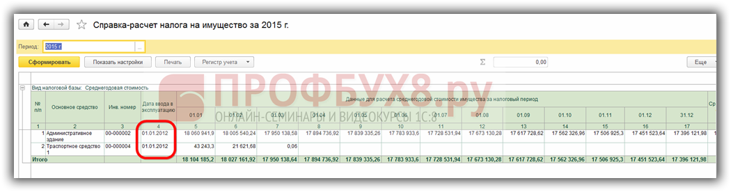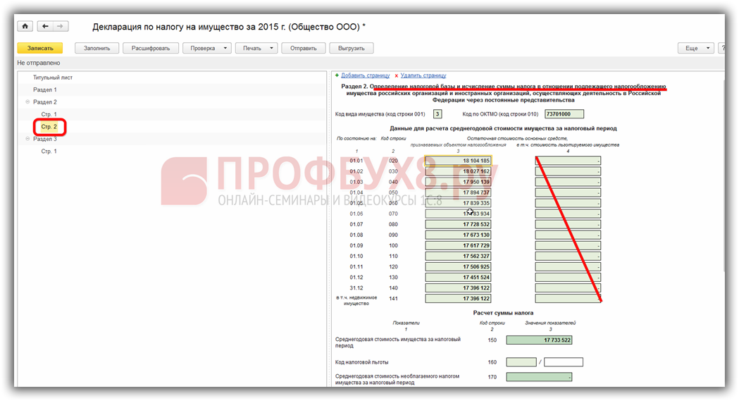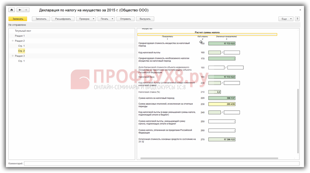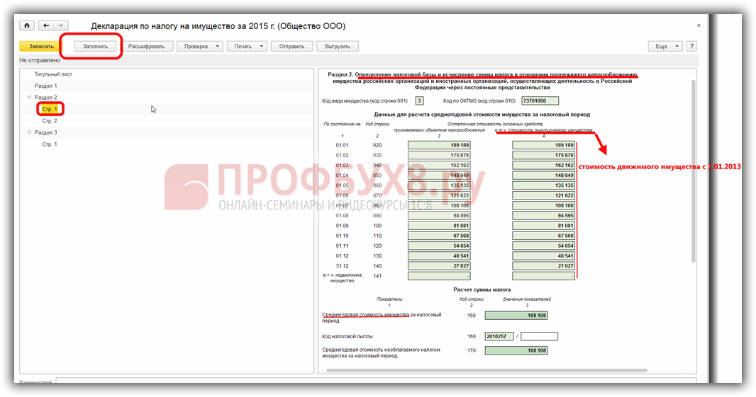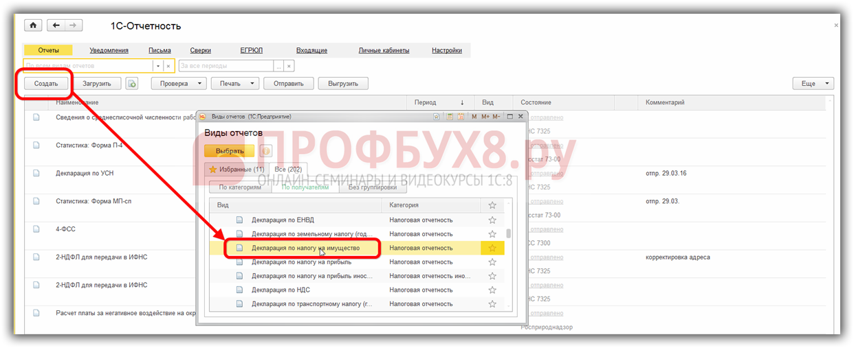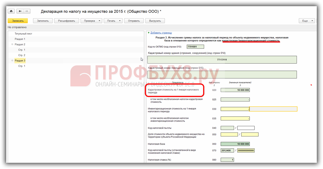 Как заполнить декларацию по налогу на имущество в 1С 8.3