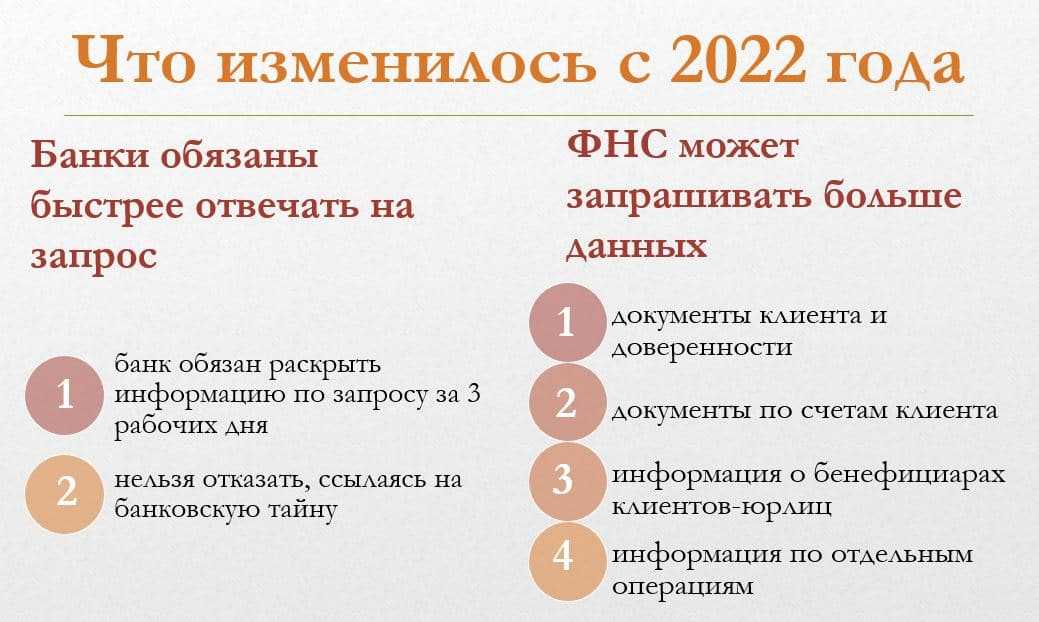 Так, закон №6-ФЗ от 17 февраля 2021 года просто расширяет полномочия налоговых органов – они получили право запрашивать данные у банков о клиентах и их операциях в упрощенном порядке. Если раньше банк мог отказать ФНС, ссылаясь на банковскую тайну, то теперь обязан раскрыть данные налоговикам в течение 3 рабочих дней с момента получения запроса от ИФНС.