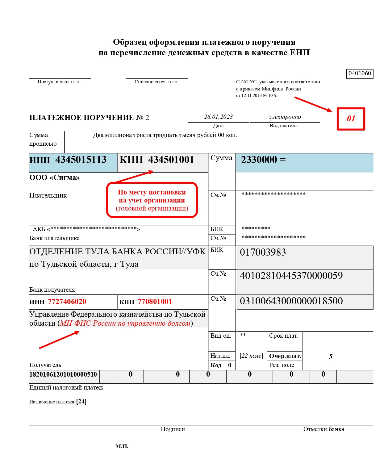 Пример использования единого платежного поручения по ЕНП