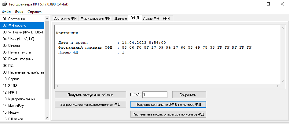 — в окне теста драйвера ККТ, например, ККТ Штрих;
