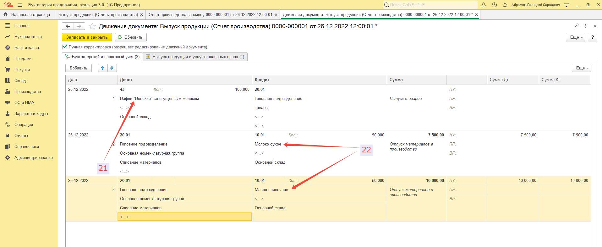Выходит, что одна форма послужила и для создания проводок, и для релиза продукции, и для списания материала для создания этой же продукции.