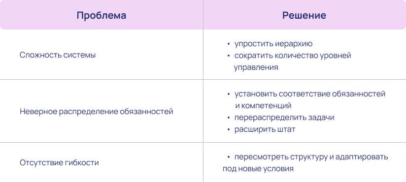 Создание и внедрение организационных структур само по себе не является целью. Нужно, чтобы система приносила пользу компании: повышала продуктивность сотрудников и делала бизнес эффективнее. Если работа, наоборот, усложняется, необходимо найти и устранить ошибки.