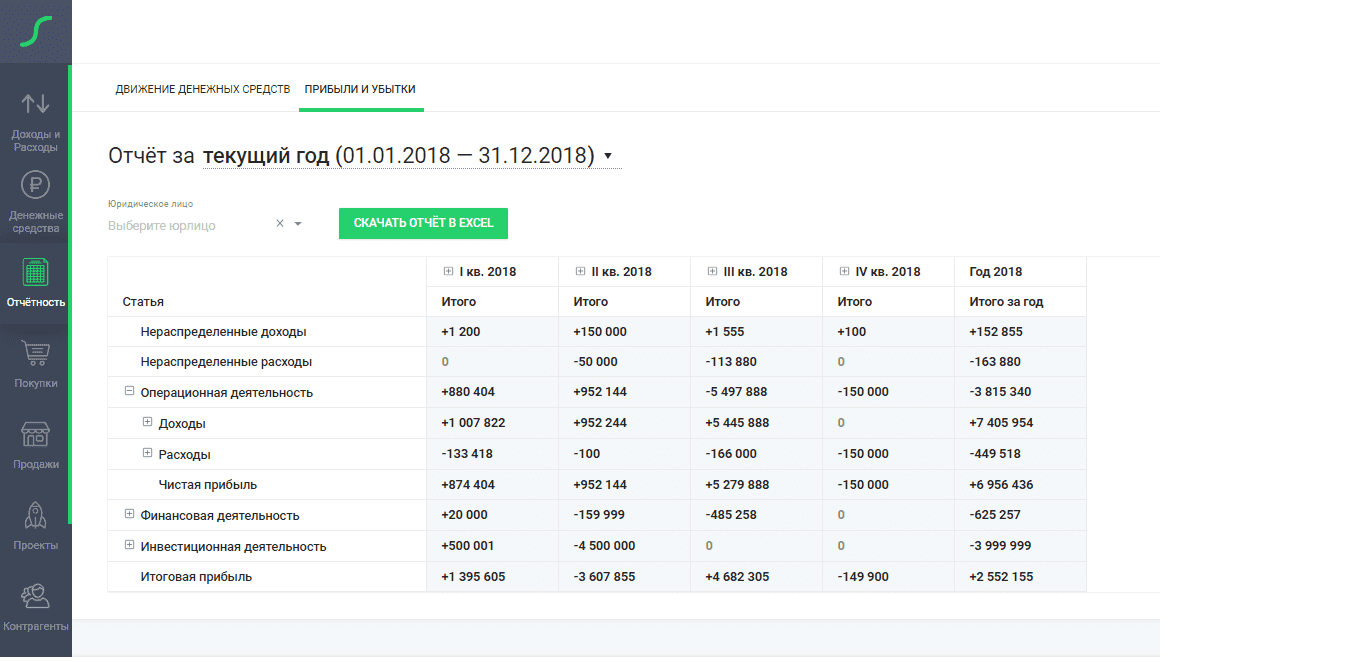 Важно, чтобы был простой конструктор PnL отчёта, отчёт о Движении денежных средств и Баланс. Также важна поддержка мультивалютности и загрузка из excel-файлов