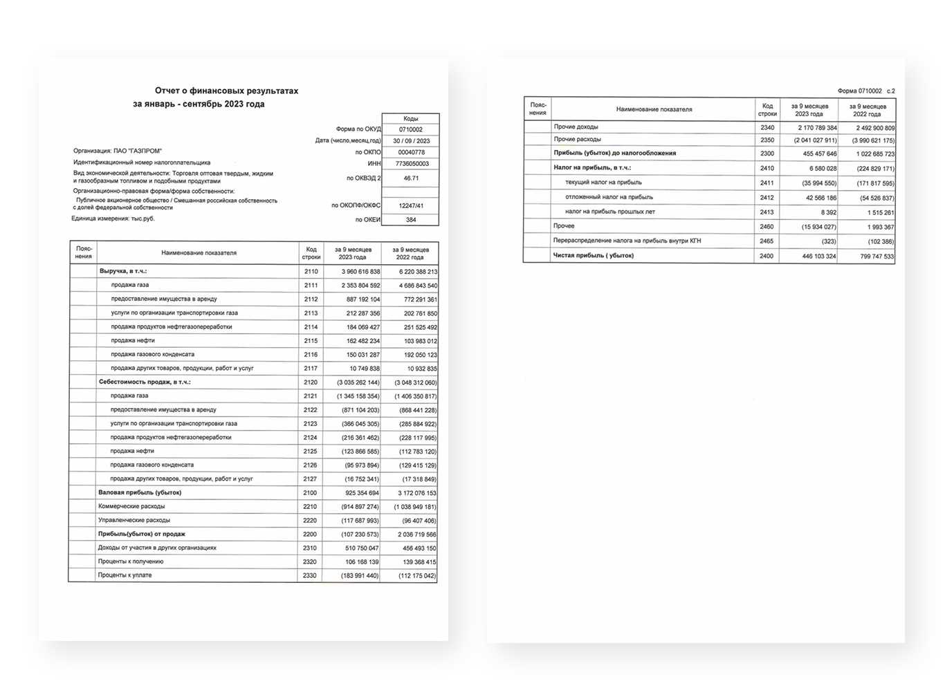 Отчёт о финансовых результатах демонстрирует результаты компании, к которым она пришла за отчётный период, и позволяет отследить, из каких сумм они формируются. По данным из формы 2 можно сделать вывод о рентабельности и эффективности бизнеса.