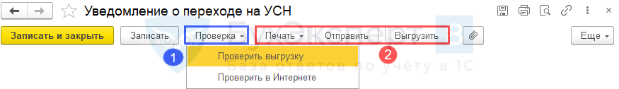 Создайте уведомление о переходе на УСН в разделе Отчеты — Уведомления, сообщения и заявления — кнопка Создать — папка УСН — Переход на УСН.