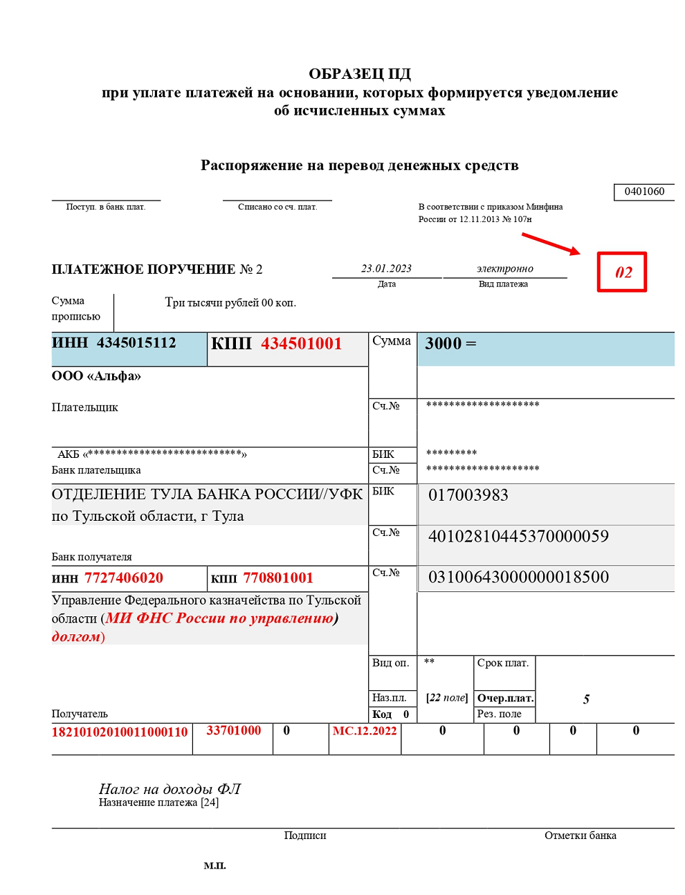Образец заполнения платежных поручений