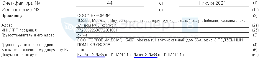 Если документов отгрузки несколько, они все будут перечислены в строке 5а.