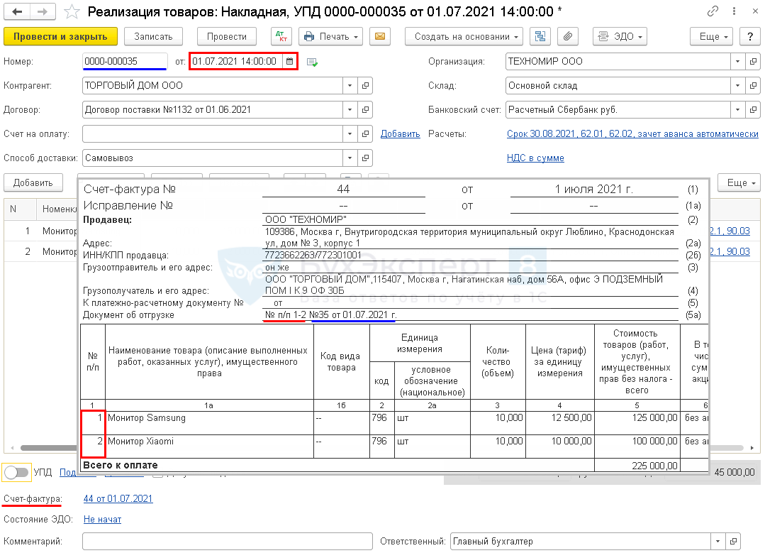 Поэтому позиции из разных документов реализации должны быть отражены в СФ отдельно.