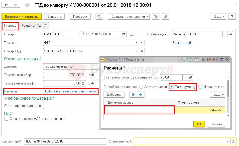 Результат проведения документа ГТД по импорту можно проверить по Оборотно-сальдовой ведомости (ОСВ) по счету 76.09 через Отчеты – Стандартные отчеты – Оборотно-сальдовая ведомость по счету . В Настройках ОСВ по счету установите Группировку по Документам расчетов с контрагентом .