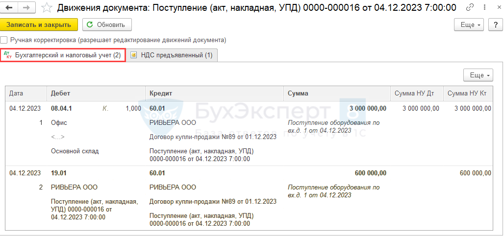В нашем примере ОС имеет разницу в элементах амортизации по БУ и НУ, поэтому воспользуемся стандартным способом.