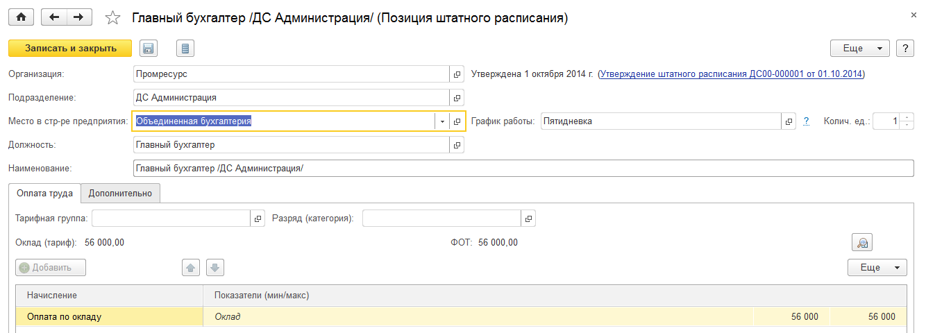 Рис.19. Ведение штатного расписания в конфигурации «1С:ERP»