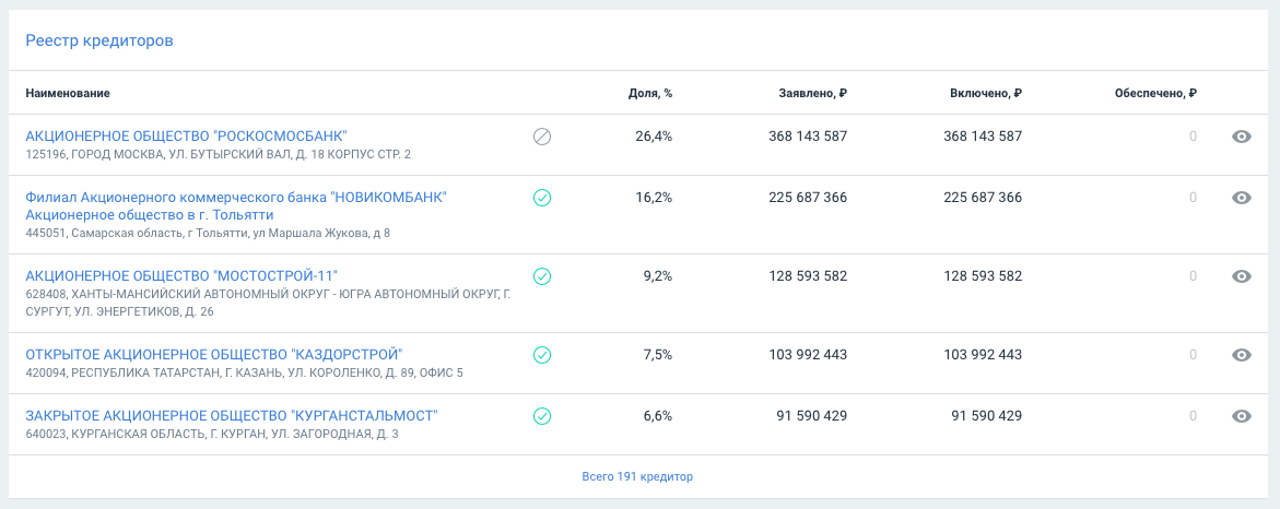 Помимо информации о ходе процедуры банкротства, а также документов, которые были получены из арбитражной картотеки, в реестре размещается информация, которая касается управляющих, СРО, организаторов торгов, а также тех, кто в ходе процесса получил дисквалификацию.