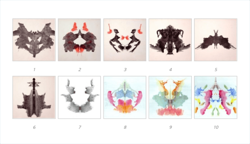 - Тест чернильных пятен или тест Роршаха, состоящий из чернильных пятен на нескольких карточках – кандидаты просто дают описание изображений и ощущений, когда они смотрят на пятна