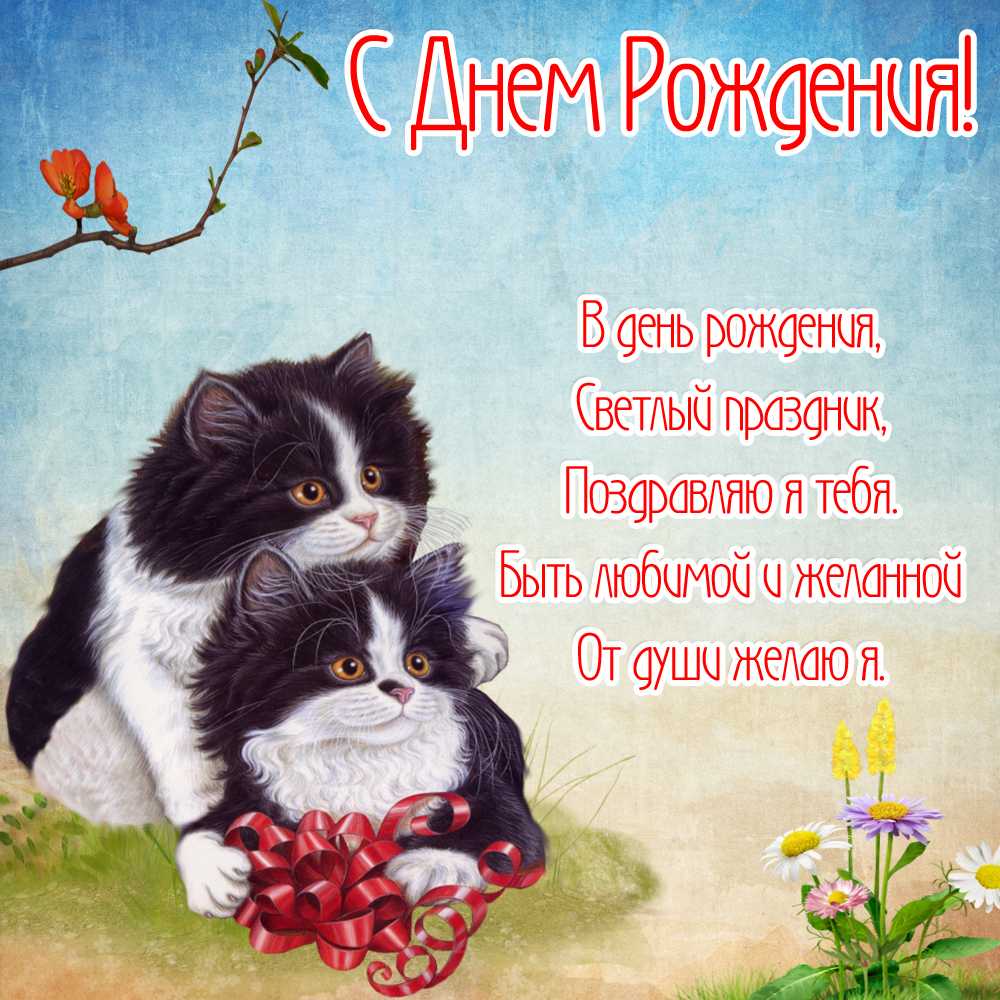 С Днем Рождения любительница кошек,Этот день сегодня только твой,Ты без ума от своих усатых крошек,Они тебе подарят радость и покой.Желаем тебе счастья, радости, здоровья,Чтоб каждый день с улыбкой проходил,И ангел пусть твой сон хранит у изголовья,А Бог послал тебе терпения и сил.